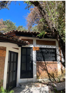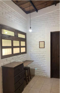 Construcción de estilo tradicional con ladrillo, madera, teja y columnas.