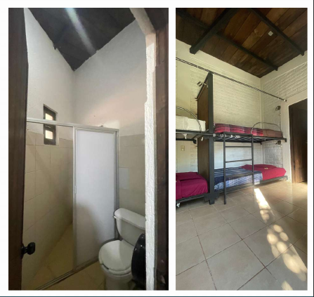 12 habitaciones con capacidad para 60 personas (con literas y baños compartidos, mesa o tocador). Con agua caliente las 24 hrs. Ofrecemos jabón de baño ecológico.