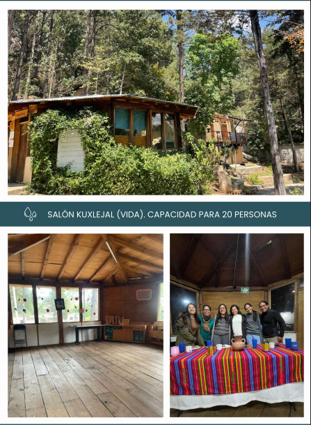 Además utilizamos ecotecnologías en los servicios: calentador solar de agua, sistema de captación de agua de lluvia, filtros de aguas grises, biodigestores para aguas negras, mingitorios secos, jabones biodegradables.